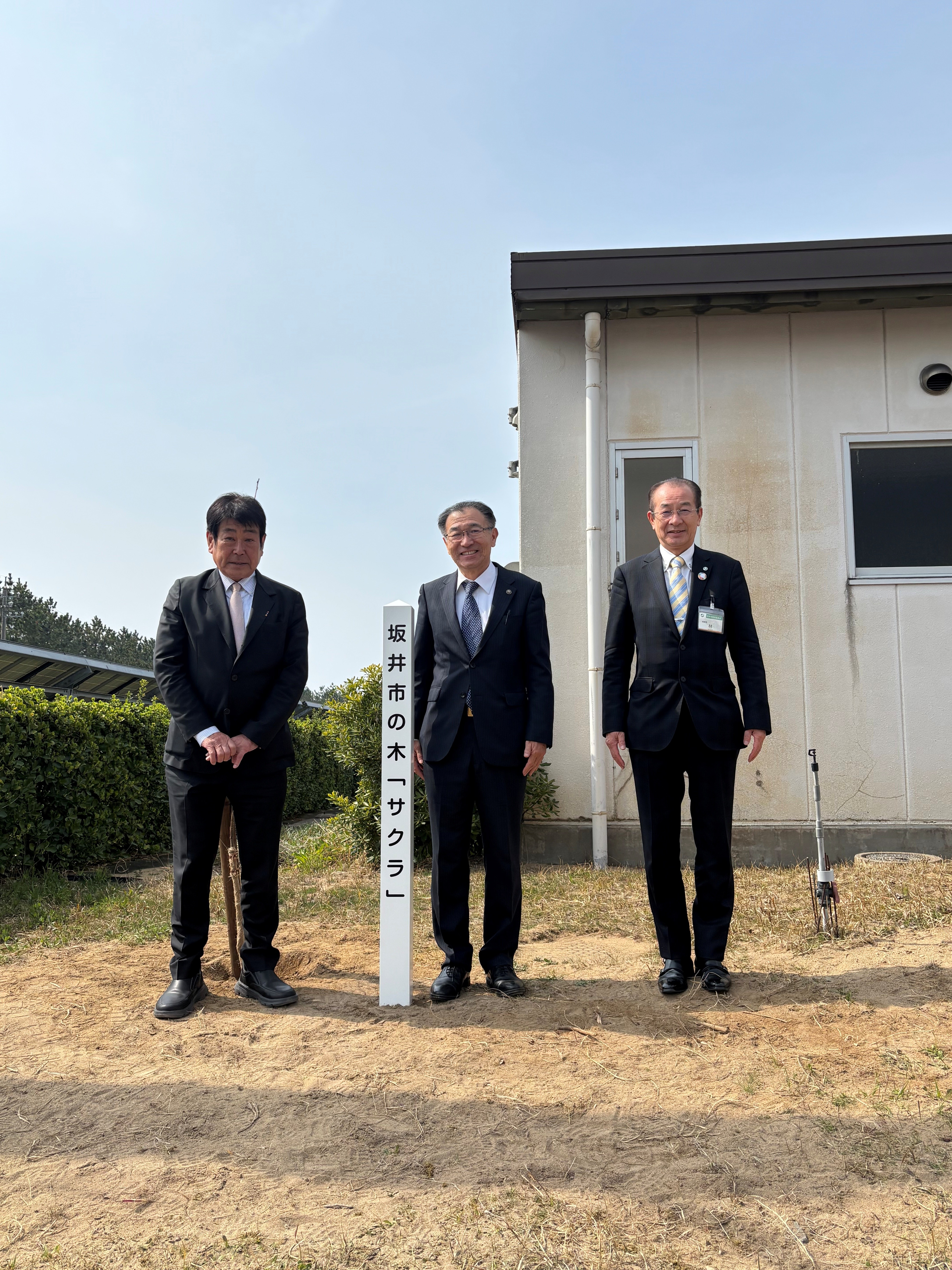 当日は坂井市市長、坂井市教育長にもご参加いただき、和やかな雰囲気の中で植樹式 を行う事が出来ました。
